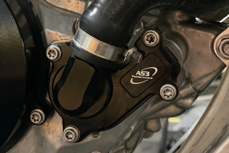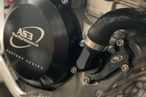 AS3 Performance water pump covers are CNC machined from billet aluminium. They are a stronger upgrade to the OEM water pump cover and provide excellent protection to the internal water pump parts. They come with an anodised finish and AS3 Performance laser etched logo.