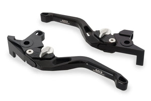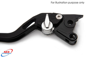AS3 Performance adjustable front brake and clutch levers are available for a wide range of sports bikes, sports touring bikes and dual sport motorcycles. They are CNC machined from aircraft grade 6061 T6 aluminium and feature a short lever design to allow the rider to control the levers with either 2 or 3 fingers. The levers have 6 adjustable reach settings which can be easily set by using the silver adjuster. They come in a black anodised finish with AS3 Performance branding on the front of the levers.