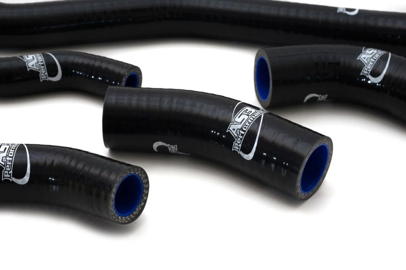 AS3 Performance silicone radiator hoses are manufactured from high quality silicone with a polyester reinforcement to make them strong, durable and less vulnerable to puncture or damage than the standard rubber hoses. Our silicone hose kits are used by many of our sponsored teams and riders in a variety of race conditions. The hoses come in a gloss finish with AS3 Performance branding.