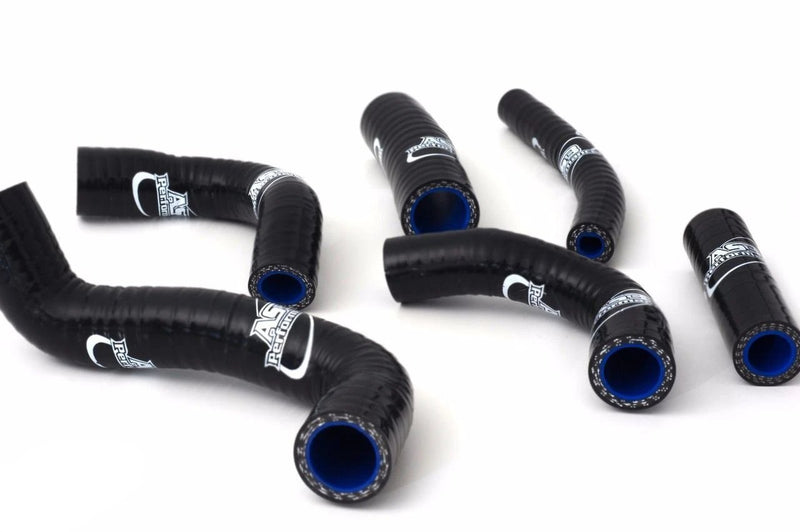 AS3 Performance silicone radiator hoses are manufactured from high quality silicone with a polyester reinforcement to make them strong, durable and less vulnerable to puncture or damage than the standard rubber hoses. Our silicone hose kits are used by many of our sponsored teams and riders in a variety of race conditions. The hoses come in a gloss finish with AS3 Performance branding.