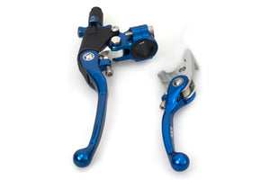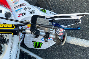 AS3 Performance Factory Series front brake and clutch levers are one of the most advanced and adjustable levers on the market. Both levers feature a flexible pivot design which allows the levers to bend outwards on impact to prevent them snapping or bending. Both levers also have an adjustable reach setting allowing the rider to set their preferred distance between the lever and the bars. The clutch assembly replaces the entire OEM perch and is fitted with a 'quick adjust' clutch cable adjuster which allows the rider to easily adjust the responsiveness of clutch cable while riding. The clamp on the clutch perch comes with 2 smooth plastic inserts, these inserts help prevent damage to the assembly by making the whole perch rotate on impact. Lastly the clutch assembly is finished off with 2 rubber boots which neatly cover vital areas to keep out dirt and debris.