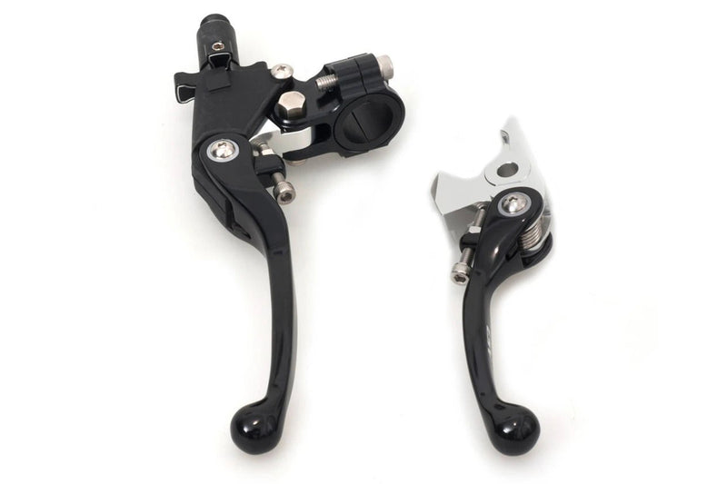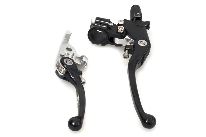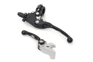 AS3 Performance Factory Series front brake and clutch levers are one of the most advanced and adjustable levers on the market. Both levers feature a flexible pivot design which allows the levers to bend outwards on impact to prevent them snapping or bending. Both levers also have an adjustable reach setting allowing the rider to set their preferred distance between the lever and the bars. The clutch assembly replaces the entire OEM perch and is fitted with a 'quick adjust' clutch cable adjuster which allows the rider to easily adjust the responsiveness of clutch cable while riding. The clamp on the clutch perch comes with 2 smooth plastic inserts, these inserts help prevent damage to the assembly by making the whole perch rotate on impact. Lastly the clutch assembly is finished off with 2 rubber boots which neatly cover vital areas to keep out dirt and debris.