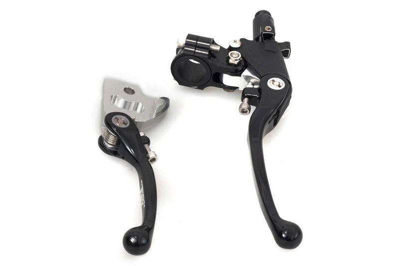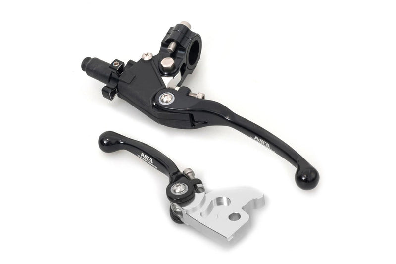 AS3 Performance Factory Series front brake and clutch levers are one of the most advanced and adjustable levers on the market. Both levers feature a flexible pivot design which allows the levers to bend outwards on impact to prevent them snapping or bending. Both levers also have an adjustable reach setting allowing the rider to set their preferred distance between the lever and the bars. The clutch assembly replaces the entire OEM perch and is fitted with a 'quick adjust' clutch cable adjuster which allows the rider to easily adjust the responsiveness of clutch cable while riding. The clamp on the clutch perch comes with 2 smooth plastic inserts, these inserts help prevent damage to the assembly by making the whole perch rotate on impact. Lastly the clutch assembly is finished off with 2 rubber boots which neatly cover vital areas to keep out dirt and debris.