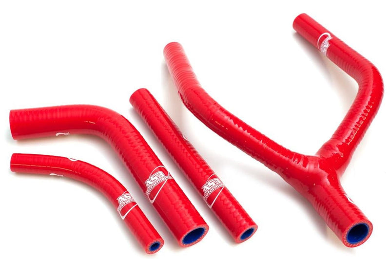 AS3 Performance silicone radiator hoses are manufactured from high quality silicone with a polyester reinforcement to make them strong, durable and less vulnerable to puncture or damage than the standard rubber hoses. Our silicone hose kits are used by many of our sponsored teams and riders in a variety of race conditions. The hoses come in a gloss finish with AS3 Performance branding.