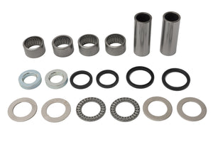 Over time the seals and bearings on the swing arm of a motocross or enduro bike can become worn and fail. Our swing arm bearing kits are supplied with all parts required to restore and repair the swing arm to perfect working order. The kit that you receive will include the exact components shown in the picture.