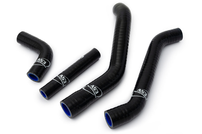 AS3 Performance silicone radiator hoses are manufactured from high quality silicone with a polyester reinforcement to make them strong, durable and less vulnerable to puncture or damage than the standard rubber hoses. Our silicone hose kits are used by many of our sponsored teams and riders in a variety of race conditions. The hoses come in a gloss finish with AS3 Performance branding.