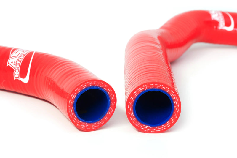 AS3 Performance silicone radiator hoses are manufactured from high quality silicone with a polyester reinforcement to make them strong, durable and less vulnerable to puncture or damage than the standard rubber hoses. Our silicone hose kits are used by many of our sponsored teams and riders in a variety of race conditions. The hoses come in a gloss finish with AS3 Performance branding.