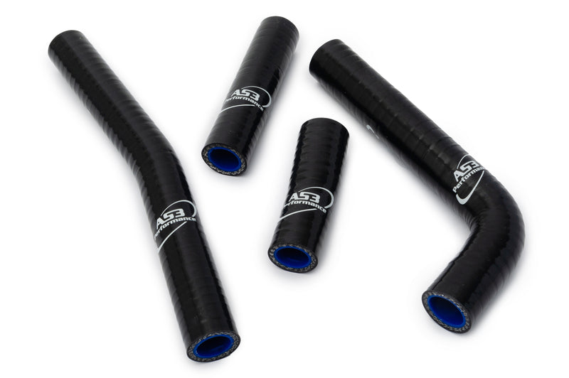AS3 Performance silicone radiator hoses are manufactured from high quality silicone with a polyester reinforcement to make them strong, durable and less vulnerable to puncture or damage than the standard rubber hoses. Our silicone hose kits are used by many of our sponsored teams and riders in a variety of race conditions. The hoses come in a gloss finish with AS3 Performance branding.