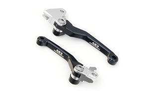 Performance flexible and adjustable front brake and clutch levers. Manufactured from high-strength aluminium, forged and then CNC machined to guarantee a long life service and a precise fit. The pivot design allows the levers to fold outwards on impact preventing them from breaking or bending. The levers are also have an adjustable reach allowing you to set them at a distance to suit the rider. Anodised in black with grey AS3 Performance logo for that factory look.