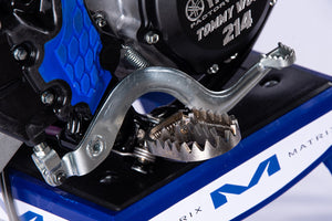 AS3 Performance titanium foot pegs are the strongest and most durable foot pegs that we offer and are the number one choice for all serious racers. They feature a 60mm wide platform giving you a much larger surface area for your boot than the OEM foot pegs and have 48 teeth for superior grip and control. The Y shaped centre of our titanium foot pegs improves the overall strength of the pegs and with a combined weight of only 363g our titanium foot pegs provide a significant weight reduction from the standard OEM foot pegs.
